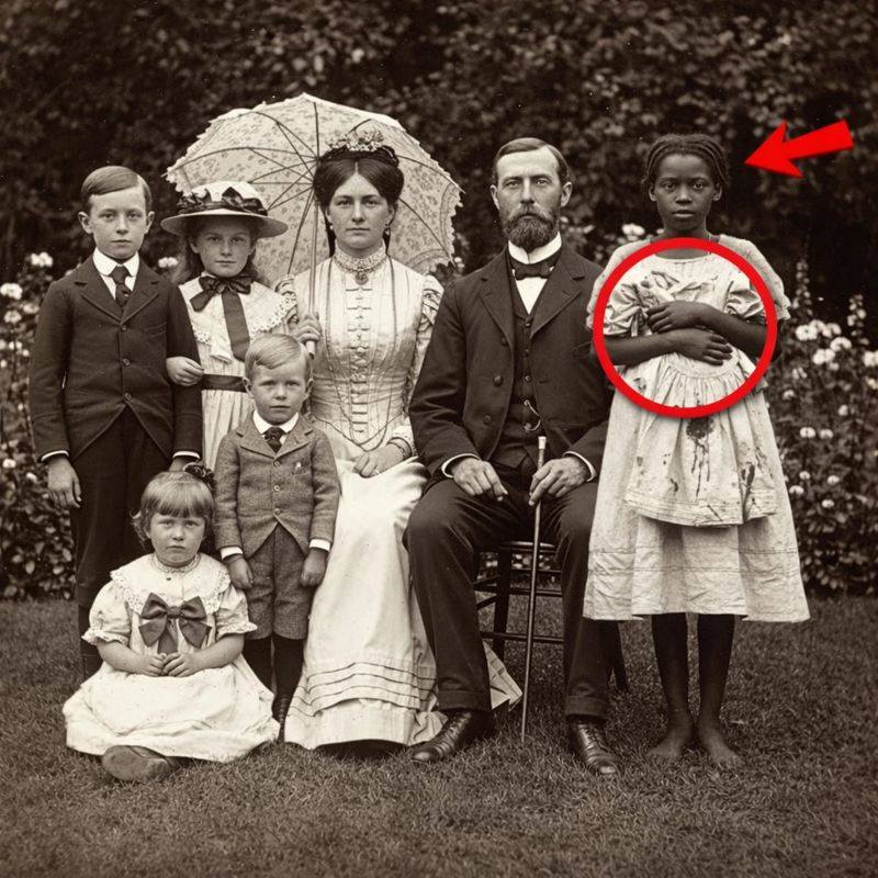 Al revisar una de ellas con mayor detenimiento, algo lo inquietó. En el borde derecho del retrato, separada del grupo familiar, aparecía una niña de piel oscura, vestida con ropa de trabajo. No posaba como los demás. No pertenecía al centro de la escena.