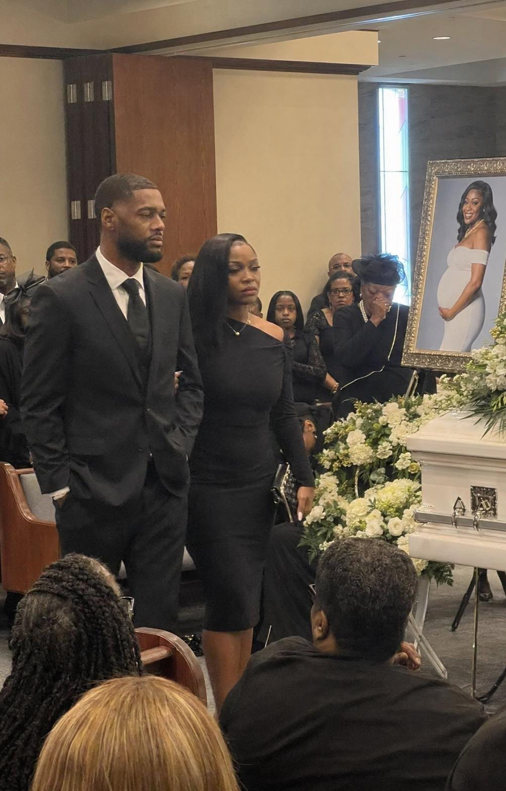 Cuando las puertas de la iglesia se abrieron y Jason entró, la tensión en la habitación se apretó instantáneamente. Llevaba un traje negro, su expresión cuidadosamente compuesta, y junto a él había una morena alta con un vestido negro ajustado, aferrado a su brazo como si ella perteneciera allí.