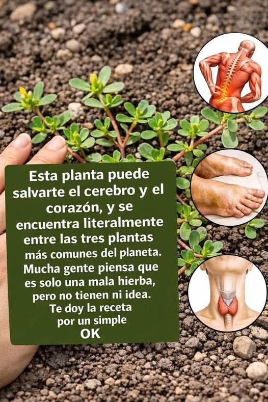 Crece en las grietas de las aceras, acecha en jardines descuidados y muchos la arrancan de raíz, pensando que es una intrusa inútil. Sin embargo, la verdolaga (Portulaca oleracea) es una de las plantas más extraordinarias que la naturaleza ha puesto a nuestros pies. Literalmente. Considerada una de las tres especies vegetales más extendidas del planeta, esta suculenta de hojas carnosas y tallo rojizo contiene más ácidos grasos omega-3 que cualquier otra planta terrestre. Sí, más que el pescado. También contiene melatonina, glutatión, vitaminas A, C y E, y minerales como magnesio y potasio. Su consumo regular protege las neuronas, reduce la inflamación arterial y fortalece el sistema cardiovascular. No es una mala hierba; es una farmacia viviente.