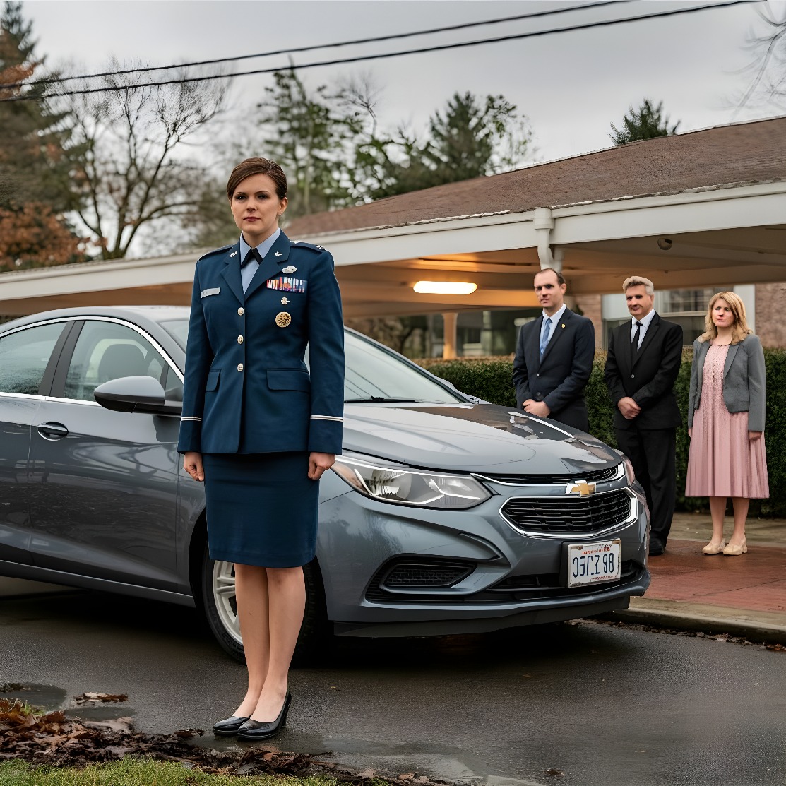 El calor me golpeó primero. Los grillos llenaban la noche. Un par de veteranos mayores me miraron un segundo y luego apartaron la vista. Mi coche estaba bajo una luz que parpadeaba, y en el maletero descansaba mi uniforme, el que había llevado en una ceremonia horas antes.