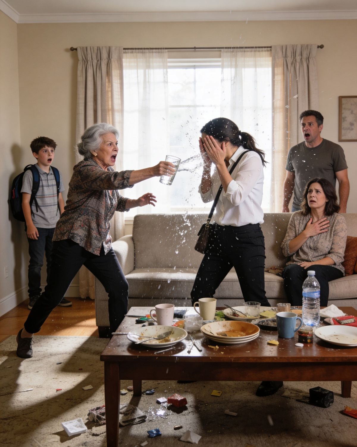 Una vecina me acercó servilletas y me dijo bajito que fuera a revisarme. Doña Carmen, en cambio, lloraba sentada en una silla, rodeada de sus hermanas, repitiendo que yo la había provocado.