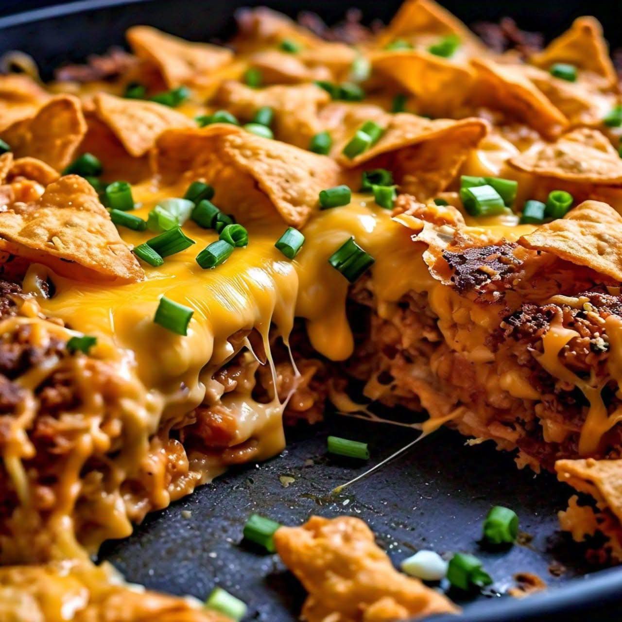 Enjoy this Tex-Mex inspired dish hot and savor the delicious combination of seasoned ground beef, colorful vegetables, creamy cheese, and of course, the irresistible crunch of Doritos!