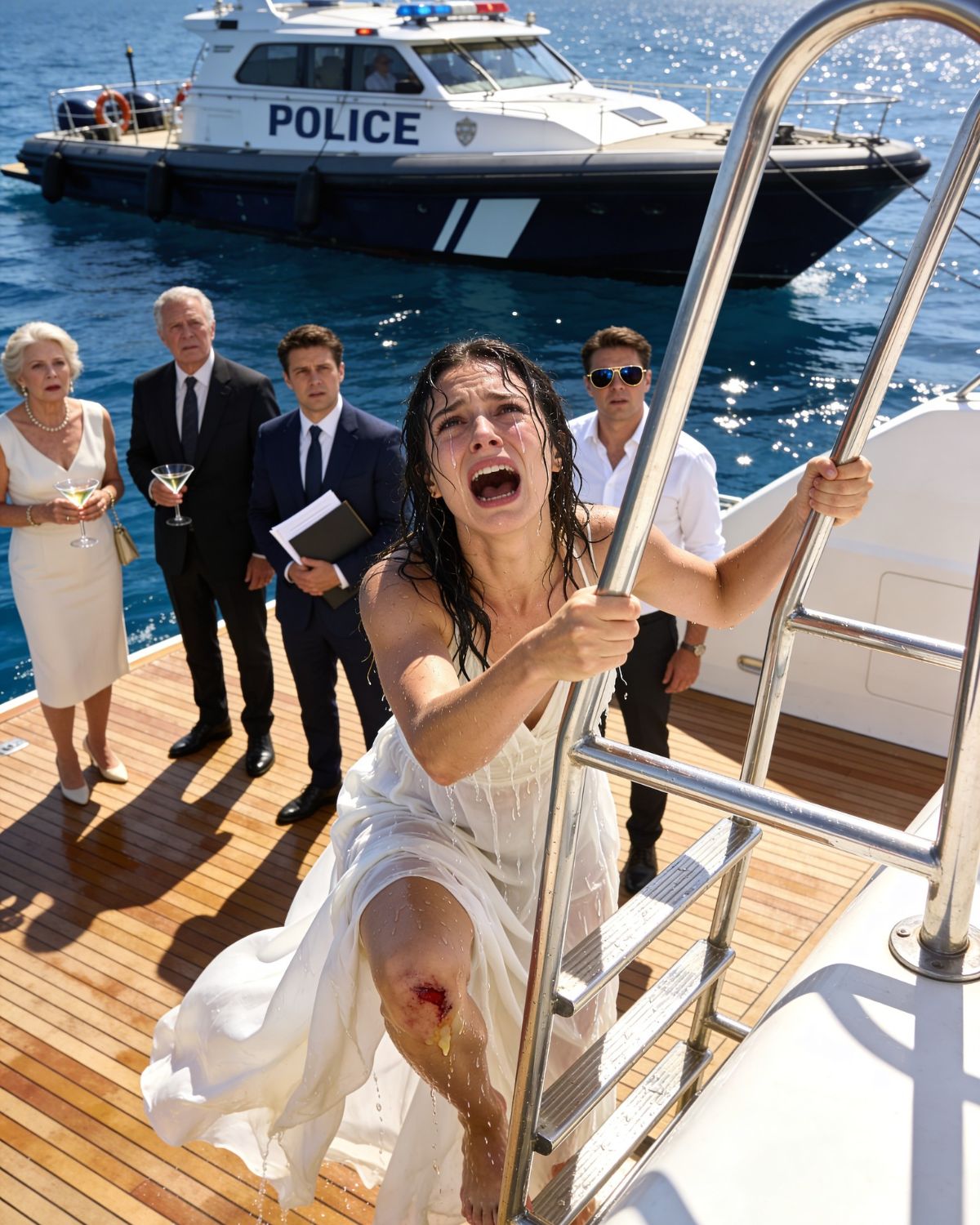 Una lancha policial se acercaba a toda velocidad, con las luces encendidas. Detrás de ella, una embarcación negra de seguridad se colocó junto al yate. En cuestión de segundos, agentes y hombres de traje subieron a bordo con precisión.