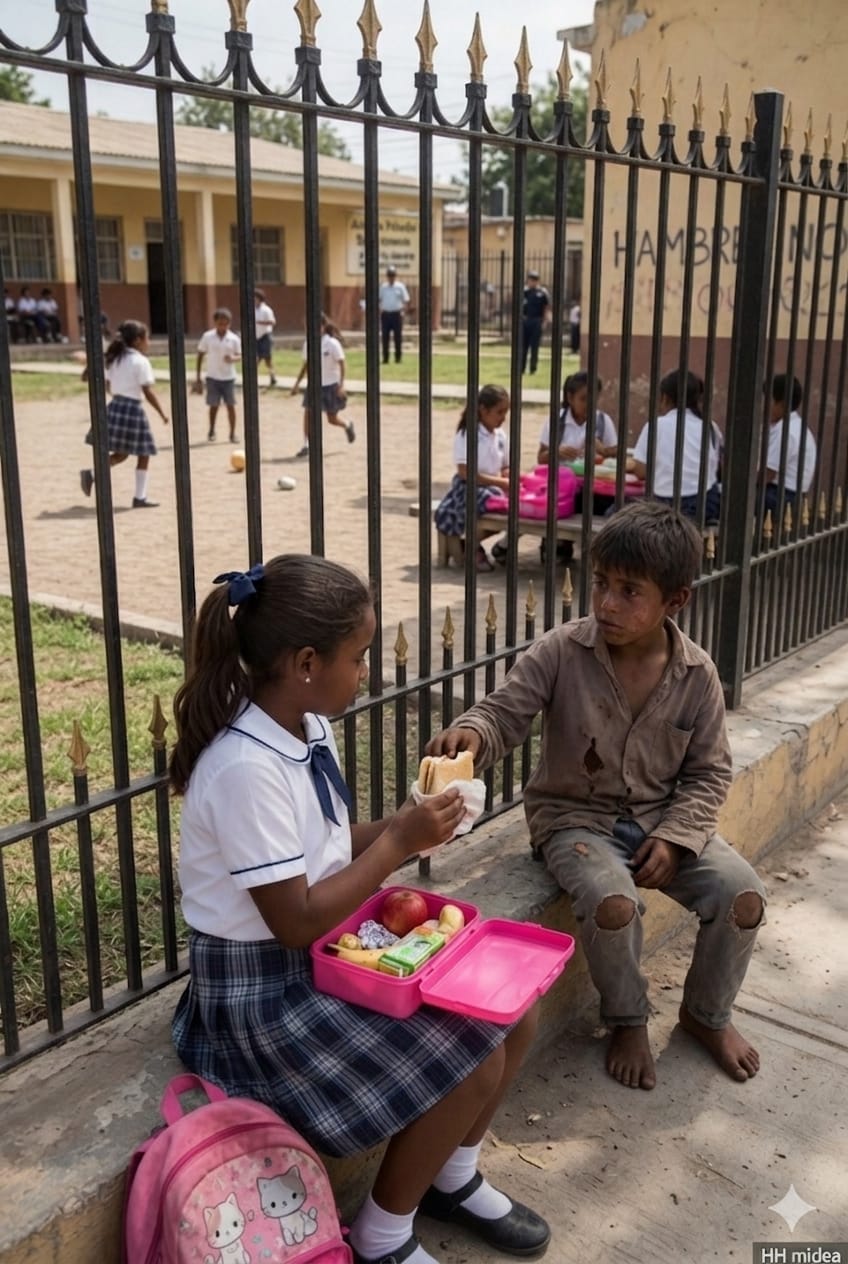 Un niño sin hogar se paraba todos los días junto a la reja de una escuela a la hora del almuerzo, y una niña rica siempre le compartía a escondidas la mitad de su comida… hasta que un día, una familia lo adoptó. Antes de irse, él la miró y le dijo: