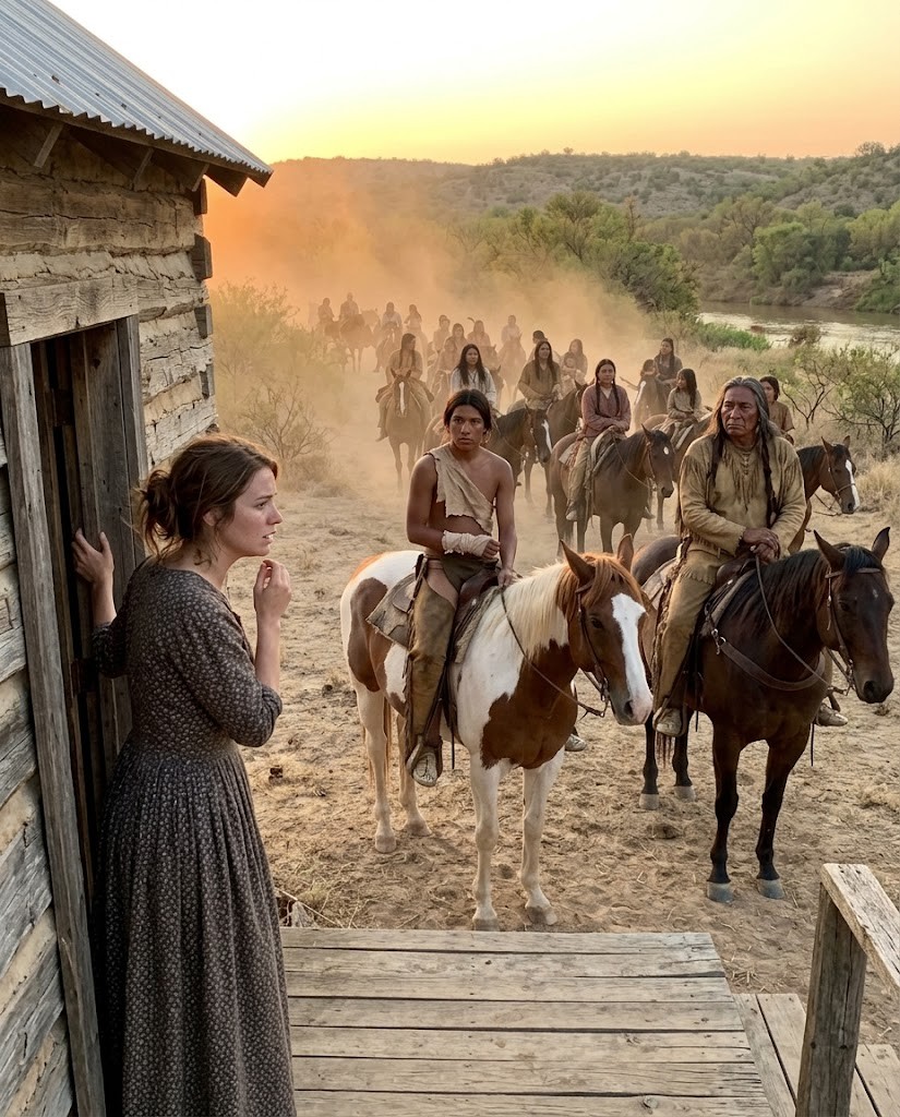 —Dicen que viste comanches río abajo —soltó, mirando más la casa que a ella.