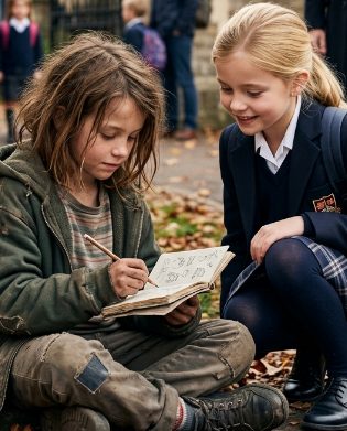 Su hija de ocho años, Sophie, estaba sentada en la acera… y a su lado, una chica adolescente con ropa gastada y demasiado grande. Era evidente que no tenía un hogar estable.
